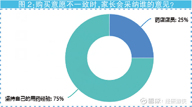 75%的家長表示當(dāng)想要購買的兒童藥與藥店店員推薦不一致時,會堅持自己的經(jīng)驗(yàn),只有25%的受訪者會采納藥店店員建議(見圖2),采納的前提是“店員講解專業(yè)”“服務(wù)態(tài)度好”“之前聽說過該品牌”。這說明,藥店店員對兒童用藥行為影響并不大。如果家長用藥經(jīng)驗(yàn)豐富,大多不需要依賴或求助他人來作出購買兒童藥的決定。