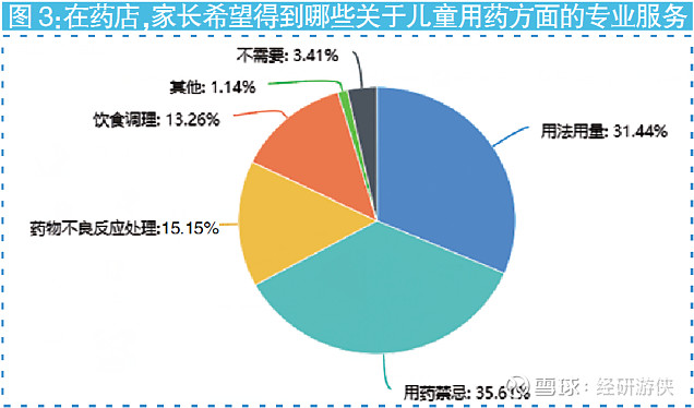 調(diào)查中,超過三成的家長希望在藥店能夠得到兒童藥“用法用量”和“用藥禁忌”等方面的專業(yè)指導(dǎo)(見圖3)。“其實(shí)在看病買藥的過程中,我們還是希望無論是醫(yī)生還是藥店藥師,能夠主動多囑咐幾句,比如吃藥時的禁忌、生病期間的飲食調(diào)理、如何正確用藥等。這樣孩子的病好得快,我們家長也能減少對藥物不良反應(yīng)的顧慮。”一位家長表示。